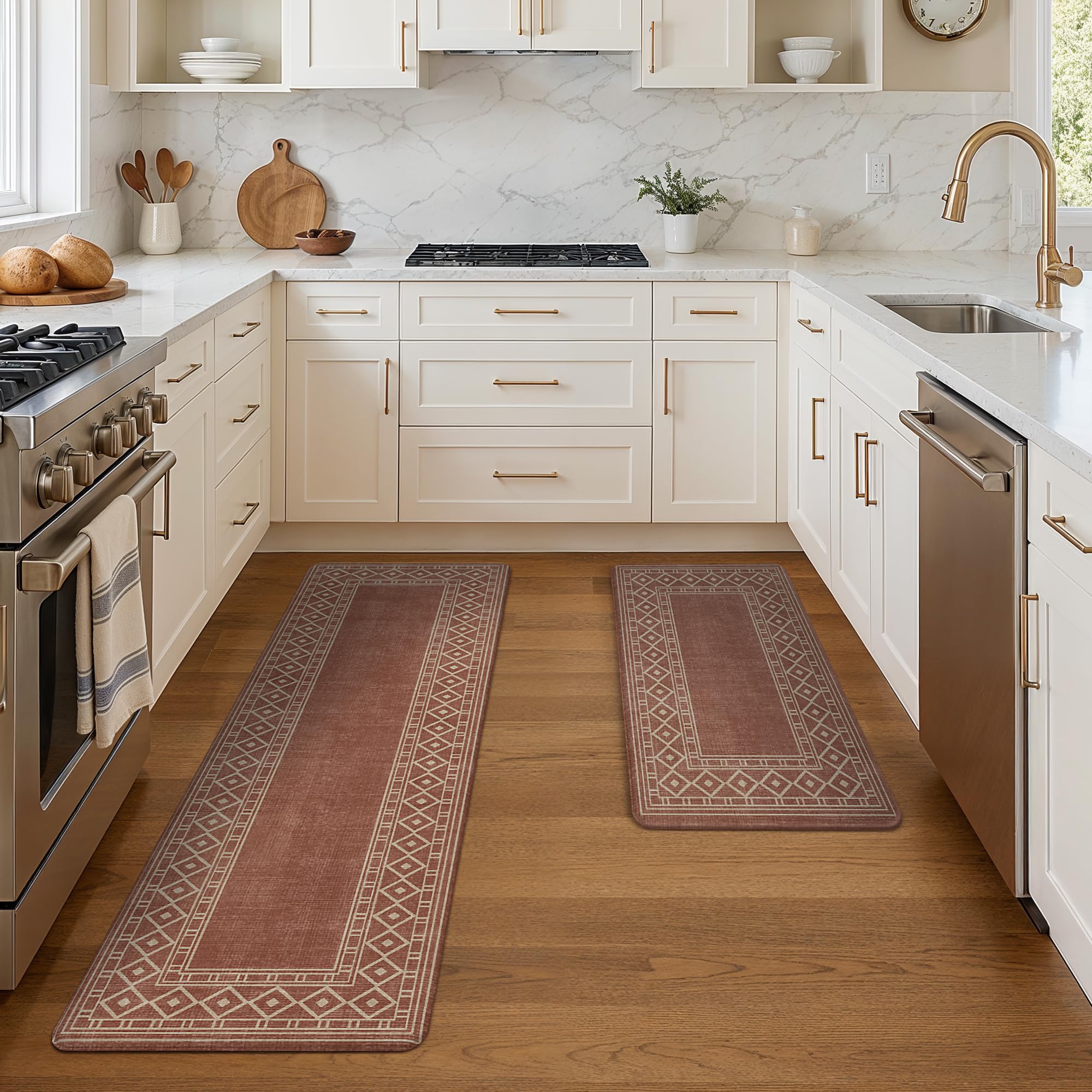 Anti-Fatigue kitchen rugs cushion your feet during prolonged periods of standing. They can be used in kitchen, living room, office, laundry room or even as pet mat.