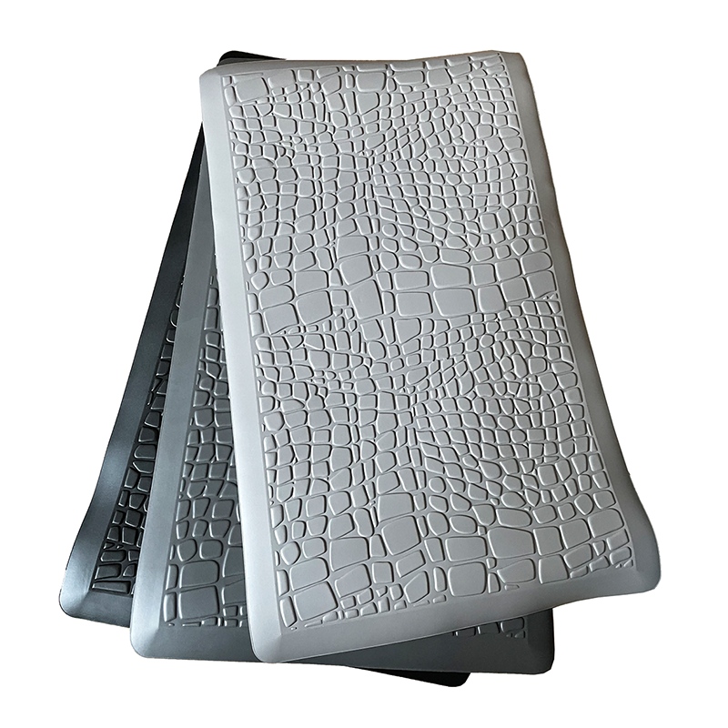 Grid pattern surface never wrinkles and gives a premium texture without collecting debris. Anti-fatigue mats are made of premium quality PVC material making it convenient to clean up and will not collect dirt;The material repels water,oils or stains and if anything spills,it makes an effortless clean up.