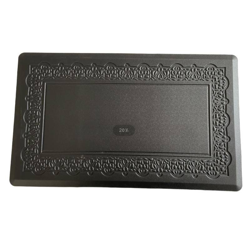 Grid pattern surface never wrinkles and gives a premium texture without collecting debris. Anti-fatigue mats are made of premium quality PVC material making it convenient to clean up and will not collect dirt;The material repels water,oils or stains and if anything spills,it makes an effortless clean up.